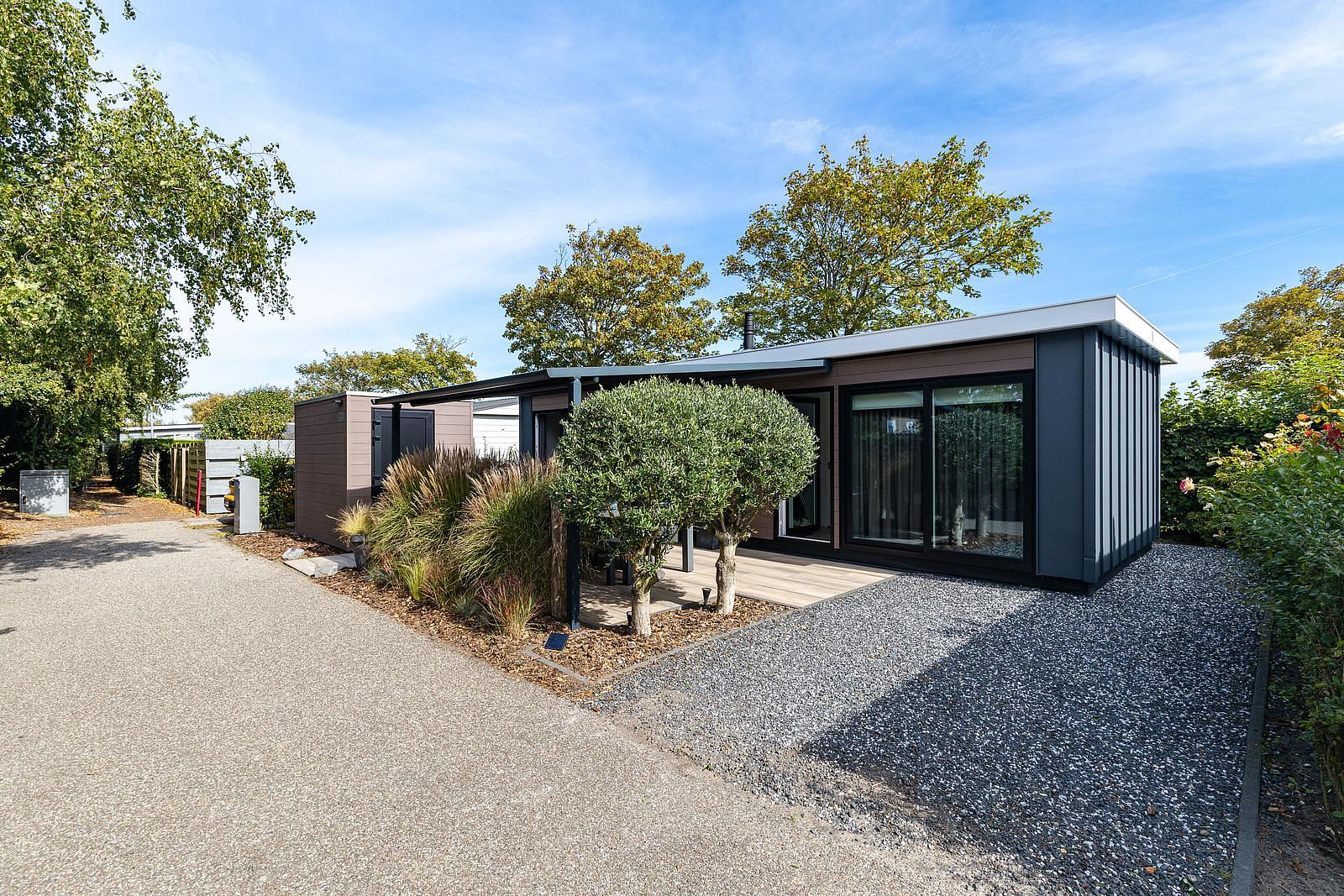 This chalet is located in a quiet dead-end street in the park, overlooking the forest. Privacy is guaranteed, with all the park’s liveliness within reach – perfect for relaxation, nature, and coastal atmosphere.