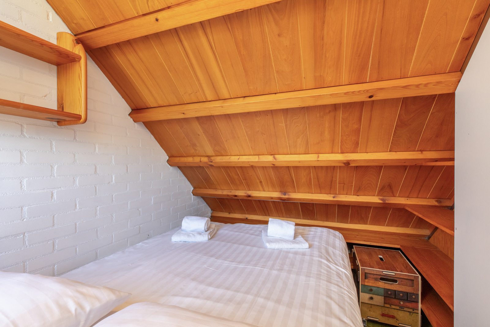The kitchen has an oven, filter coffeemachine and a dishwasher. On the 1st floor are two bedrooms. One with a single bed and the second bedroom is with a double and a single bed.